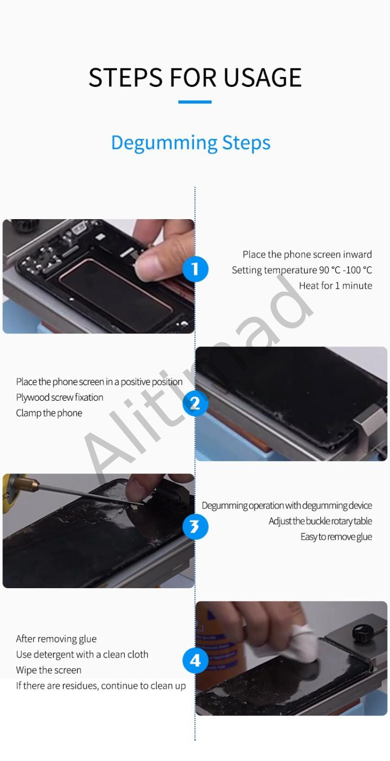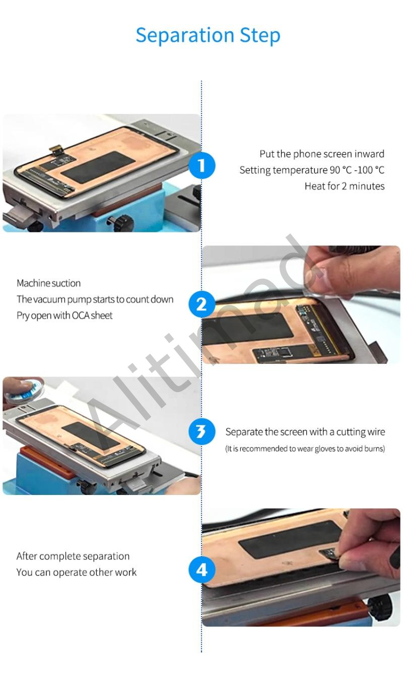 بلاطة تسخين تساعد في فك الشاشات خاصة عند فصل الزجاجة عن الشاشة تتميز بوجود حواف لتثبيت الشاشة اثناء العمل بها